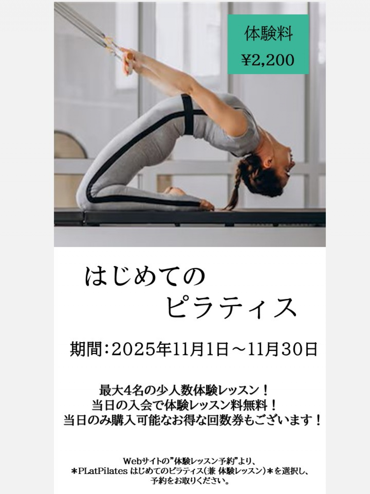 ぜひこの機会に、PLatPilatesの体験レッスンにご参加ください。